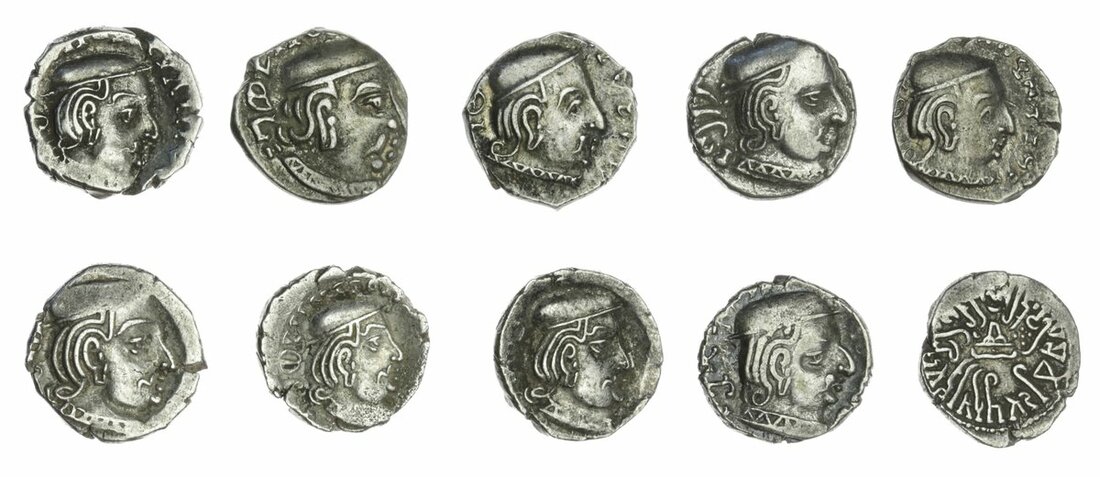 Kshatrapa (Western Satraps) (2nd-4th century AD), Drachms (10), including issues of Vijayasena, dated SE 167, Rudrasena II (5), one with date SE (1)86, Bhartrdaman, partial date SE 2--, Rudrasena III (4), one with partial date SE 28-, now quite difficult to find, especially with dates, fine to very fine (10)