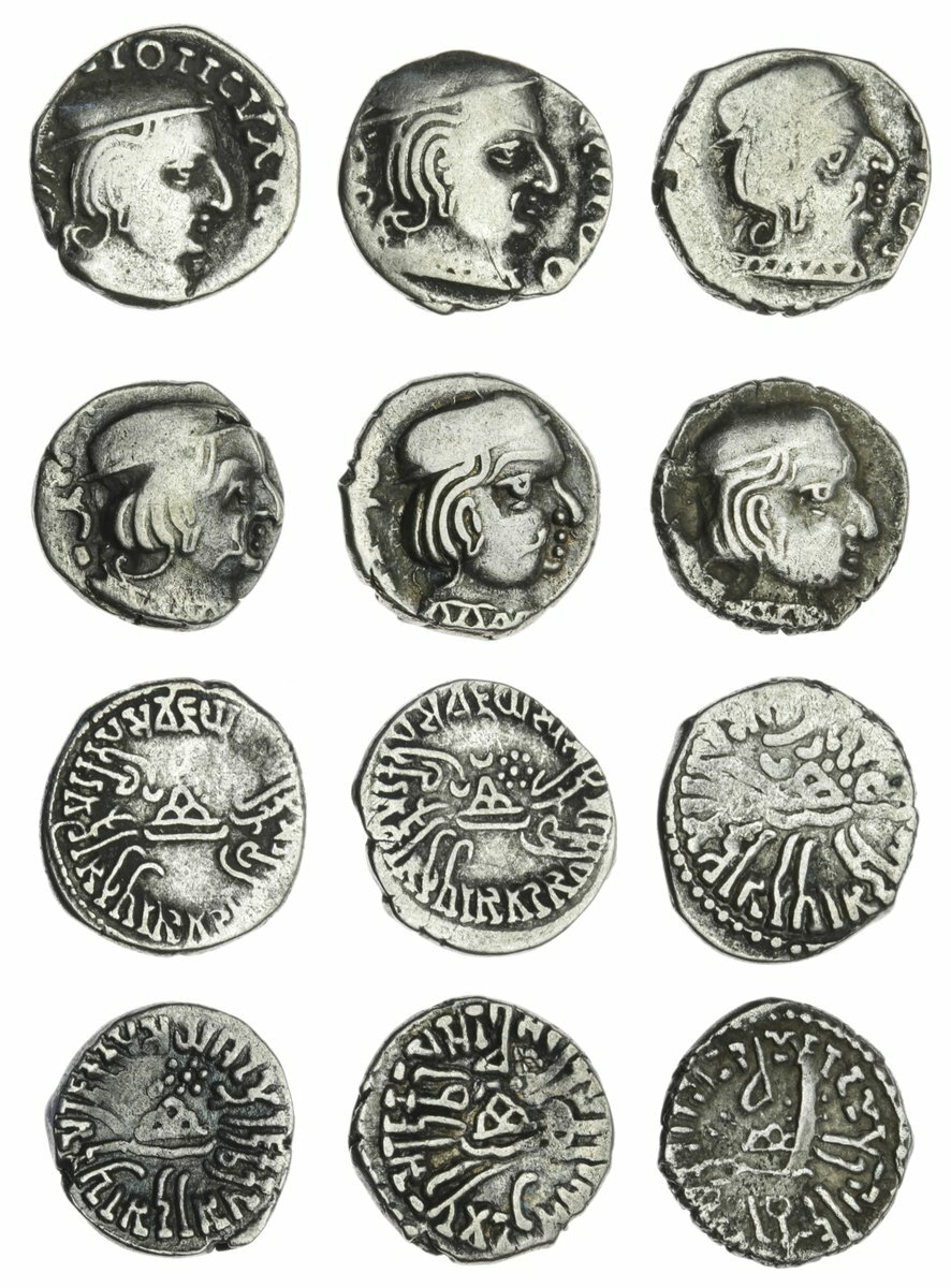 Kshatrapa (Western Satraps) (2nd-4th century AD), Drachms (6), one each of Vijayasena, Rudrasena II, Visvasimha, Bhartrdaman, , Rudrasimah II, Yasodaman II, some with partial dates, mostly unreadable, generally very fine (6)