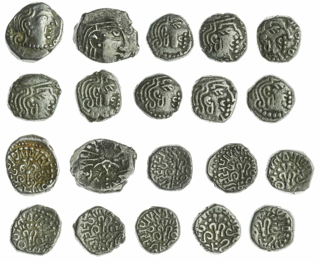 Gupta Empire, Kumaragupta (c.414-55), Drachms (9), bust of king right, rev. stylised Garuda, with Brahmi legend around, struck on small flans, together with another similar Drachm (MAC 4845-58), fine to very fine (10)
