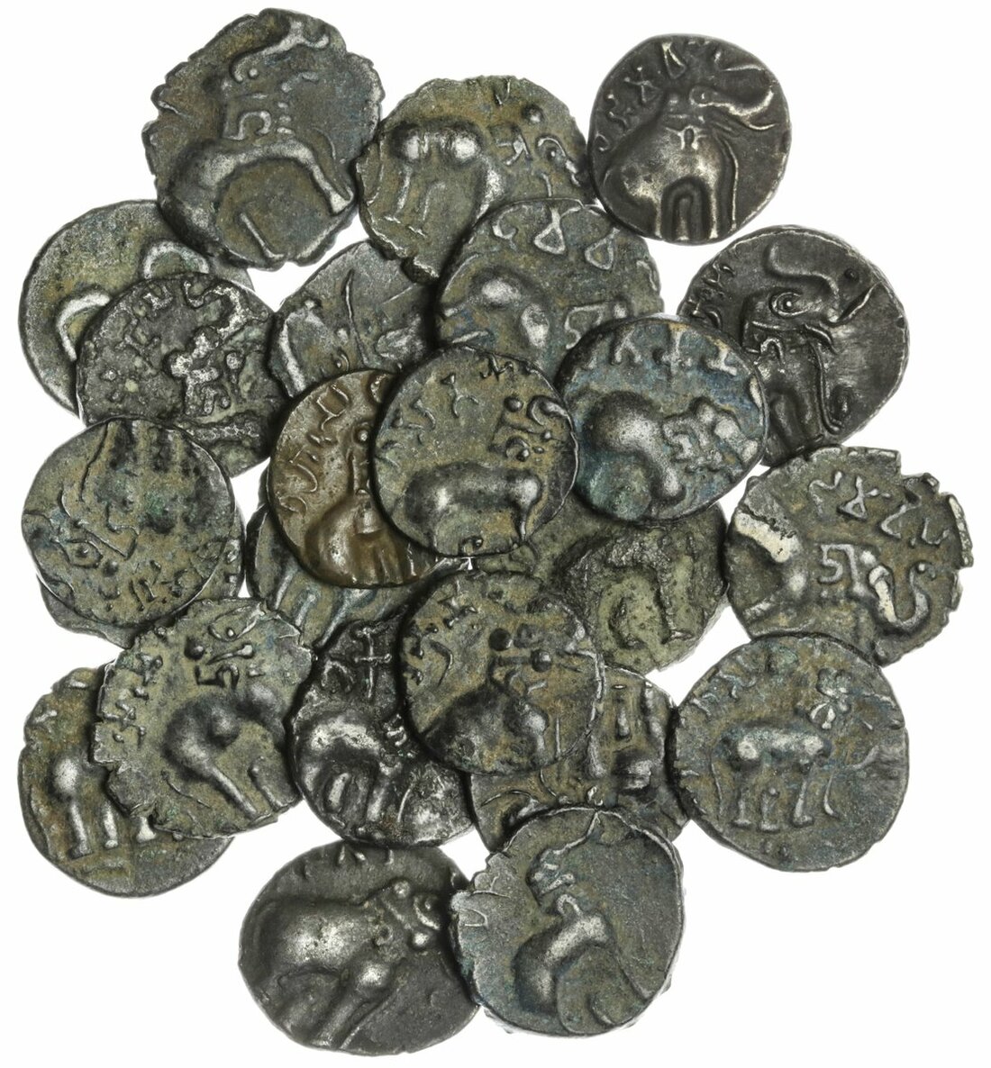 Satavahana, Sri Pulumavi (147-54), Yajna Satakarni (c. 170-200), potin Units (24), elephant with Brahmi legend above, rev. Ujjain symbol (MSI. part II. 224-229; MAC 4941-4967), un-corroded, unlike many of this type, most with partial legends and an attractive tone, fine to very fine (24)
