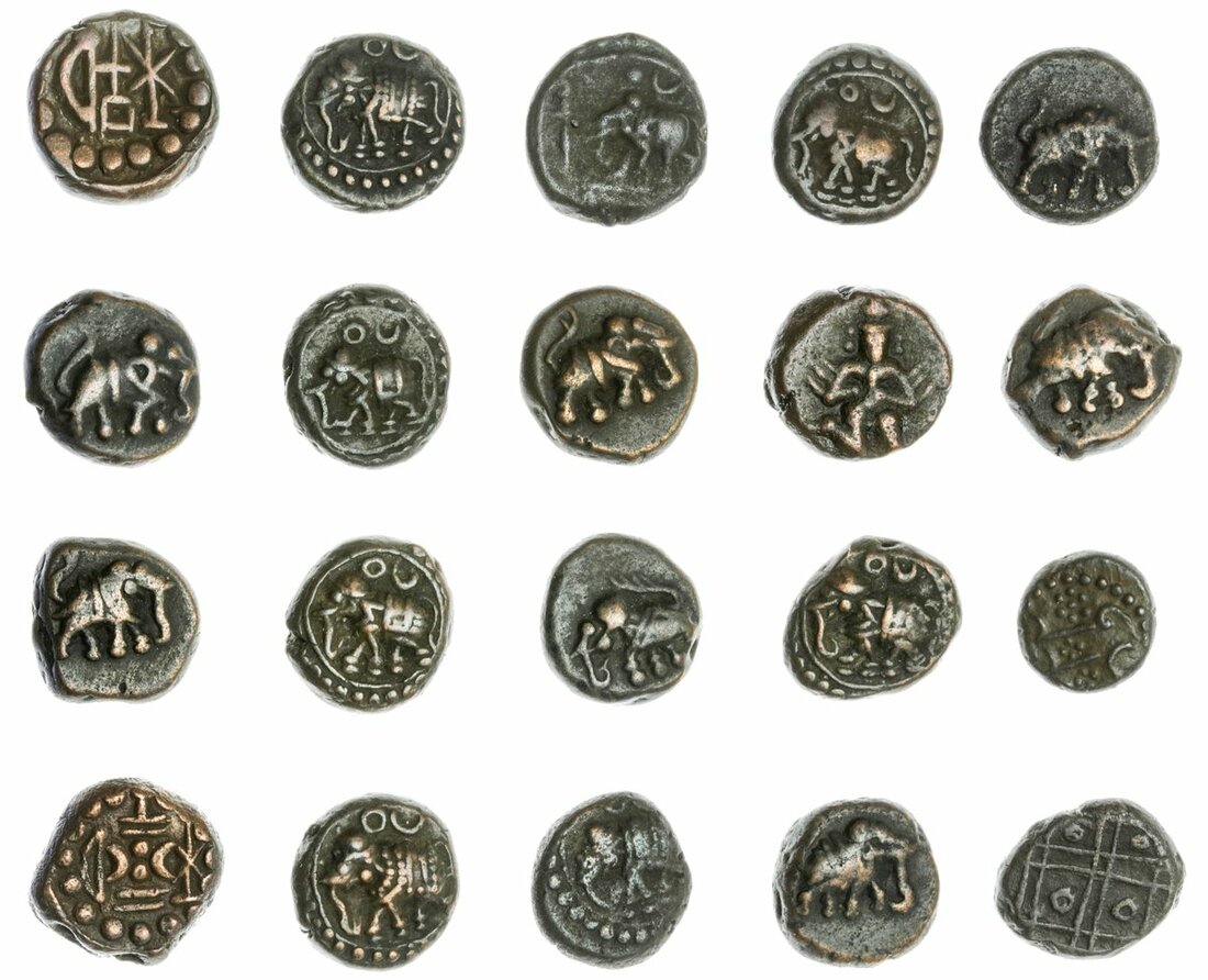 South India, Mysore, AE Kasu (18), mostly anonymous types with criss-cross reverse, one attributed to Hyder Ali with cypher 222, Ummattur Chiefs of Kongu, AE Kasu (2), generally very fine or nearly so (20)