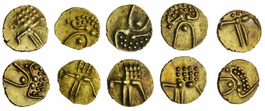 This type of fanam was also produced in Kandy and used in Sri Lanka. However these usually contain less gold than the examples in this lot.