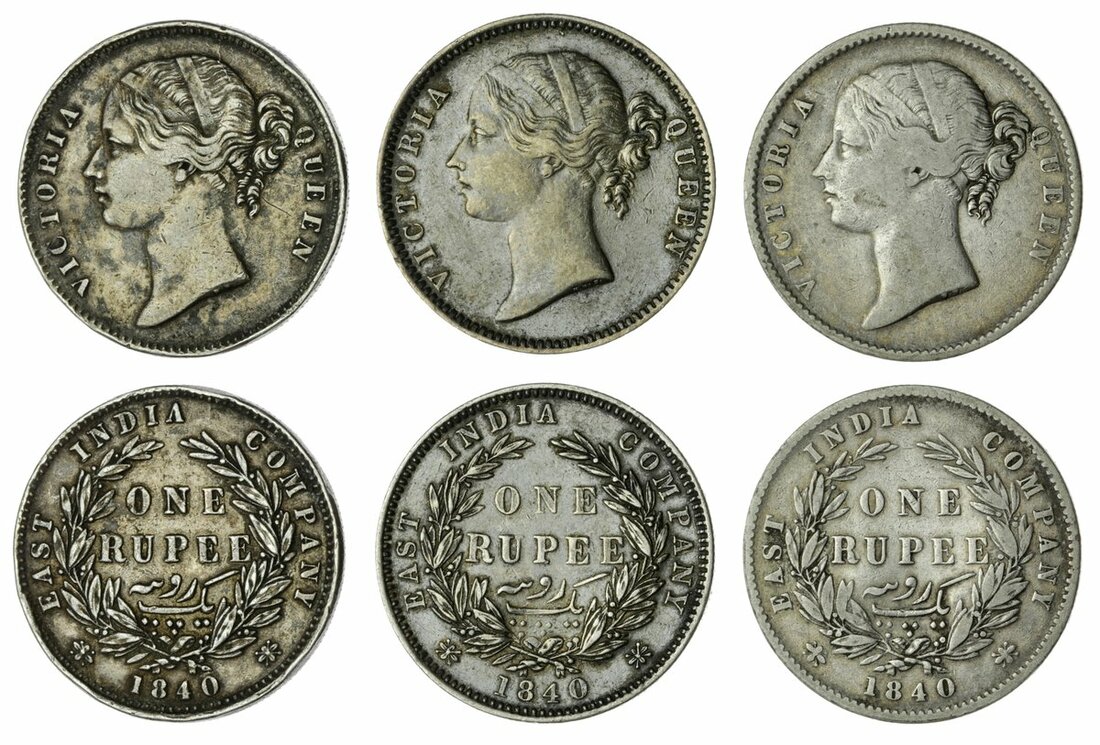 East India Company, Victoria, Rupees, 1840 (3), divided legend, Madras (3), the first with initials W.W.B. on truncation of bust (type F / I), the others with initials W.W. (A / I) (S & W 3.36, 3.42; Pr. 60, -), the first toned very fine, scarce, the others fine (3)