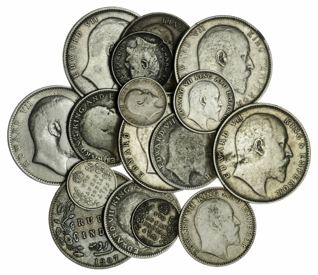 British India, Edward VII (1902-11), Rupees (6), 1904B, 1906B, 1907C (3), 1907 uncertain mint, Half-Rupees (4), 1907C, 1907B, 1908C, 1910C, Quarter-Rupees (2), 1907C, 1908C, 2-Annas (3), 1904C, 1907C, 1910C, AE Quarter-Anna, 1904C, Rupees very fine or better, others good fine or better (16)