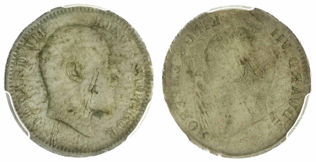 British India, Edward VII, AE Quarter-Anna (1906-11), obverse brockage, bust of Edward right,