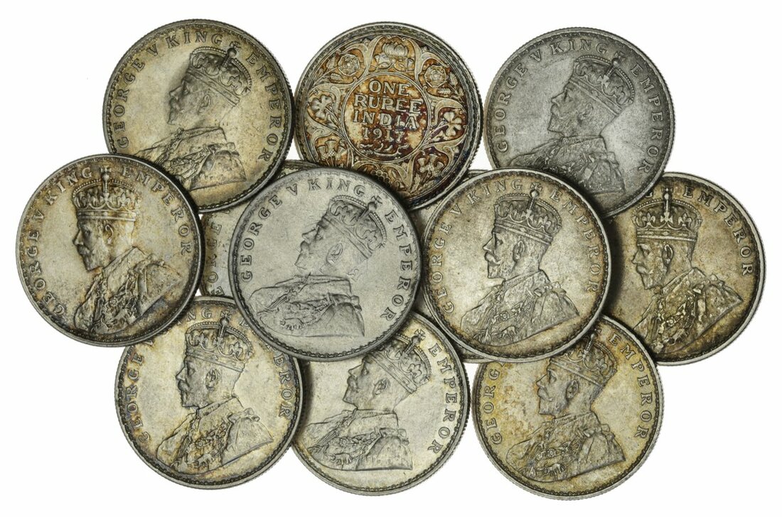 British India, George V, Rupees (12), 1913B, 1914C, 1915C, 1917B, 1918C, 1919B, 1920B, 1921B (3), 1922B (2), most cleaned, generally all around extremely fine (12)