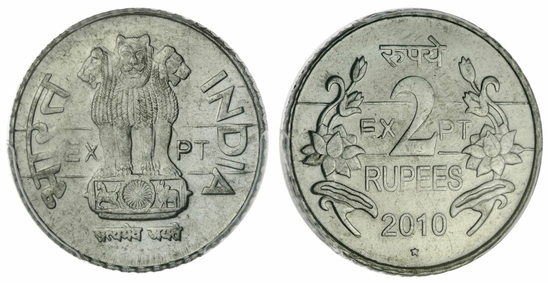 India, Republic, steel experimental pattern 2- Rupees, 2010 H, Hyderabad, Ashoka lion capital, EX PT between parallel lines across, rev. value above date between two floral sprays, EX PT between parallel lines across, graded by PCGS SP 65 (80294918)