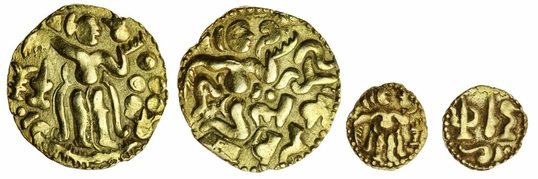 Sri Lanka (Ceylon), Anonymous (c.960-1214), gold Kahavanu, type III (B), gold Aka (Eighth-Kahavanu), similar, but with legend believed to read daraka, all Jasmine flower and chank (conch) types, (Codrington 53, 67-8; Mitchiner, Southern India, part 2, 311-12, 315-317), generally very fine (2)