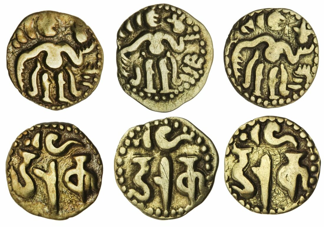 Sri Lanka (Ceylon), Anonymous (c.960-1214), gold Aka (Eighth-Kahavanu) (3) with legend believed to read daraka, beneath a conch, all Jasmine flower and chank (conch) types (Codrington 67-8; Mitchiner, Southern India, part 2, 315-317), about very fine to very fine (3)