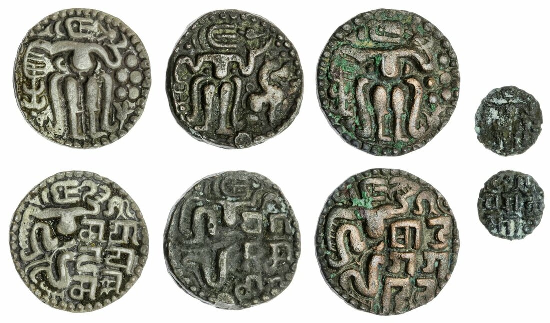 Sri Lanka (Ceylon), Parakrama Bahu I (1153-86), AE Eighth-Massa, Codaganga (1196-97), copper Massa, Sahassa Malla (1200-02), silver or white metal Massa, 3.96g, Parakrama Bahu VI (1415-1468), copper Massa, lion to right of standing figure (Codrington 77, 79, 81, 97-103; Mitchiner, Non Islamic, 832, -, 835, -), the first coin about fine, the second a single year type, very fine, scarce, the third good very fine, rare, the last good fine and also scarce (4)