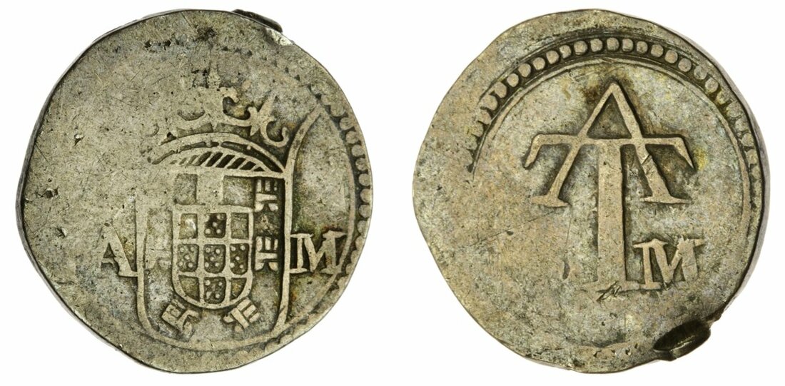 Malacca, Indo-Portuguese, Dom Philip III (1621-40), Tanga, 3.10g, date not visible, arms between A - M, rev. Tanga monogram between D - M (Gomes 11.01), about fine