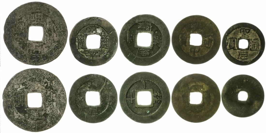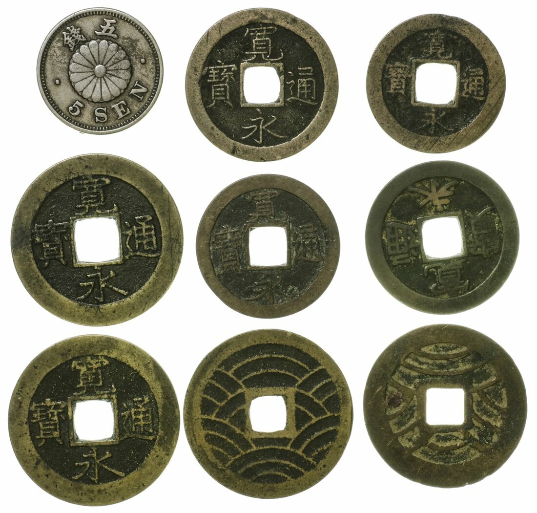 South East Asia, Korea, 5-Cash, Cash (2), Annam, Cash, Vietnam, Ho Dynasty, Cash, about fine to fine, Japan, 5-Sen, year 22, 4-Mon (3), in brass, iron and copper, AE Mon (4), Nami (wave) cash, the first very fine, others fine to very fine, some scarce (14)