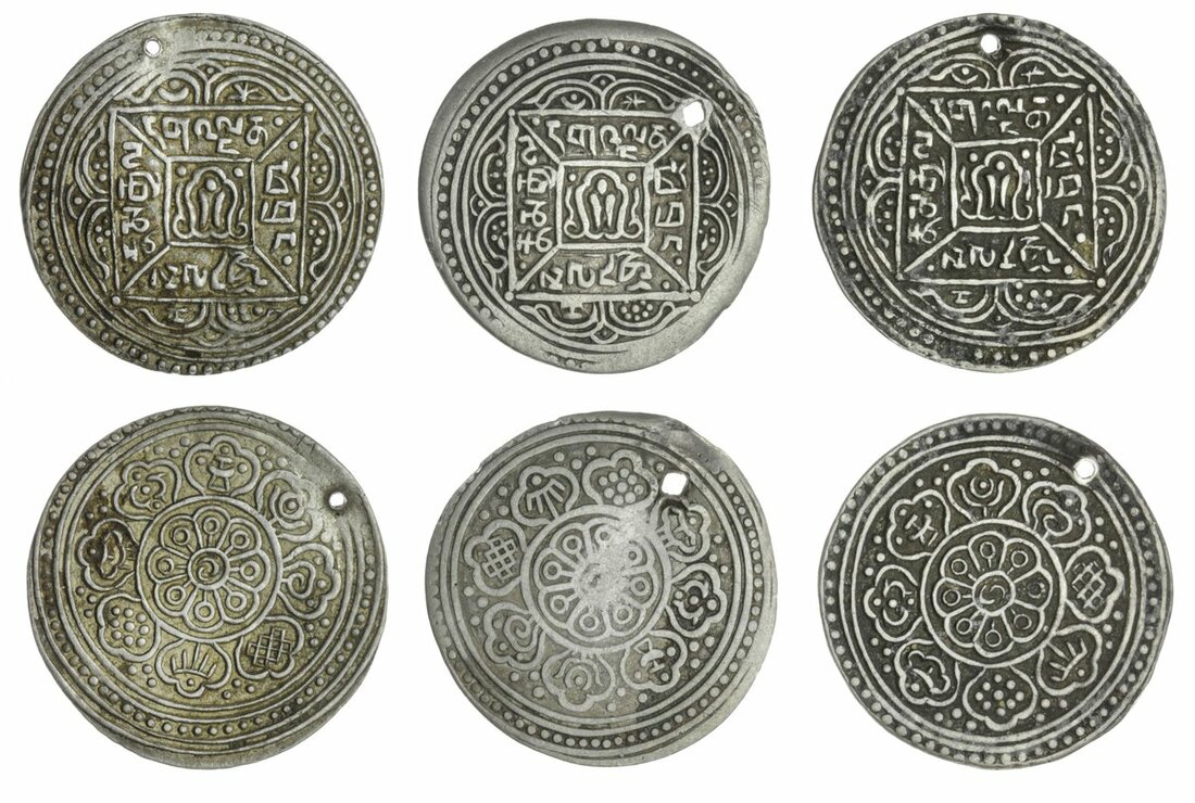 Tibetan Government, Anonymous (1910), Kelsang (Monk) Tangkas (3), undated, obv. bead types: 1/2/0/1, 1/2/2/0, 1/2/2/1 (YZM 352 var; KM Y#14), generally very fine, but all holed (3)