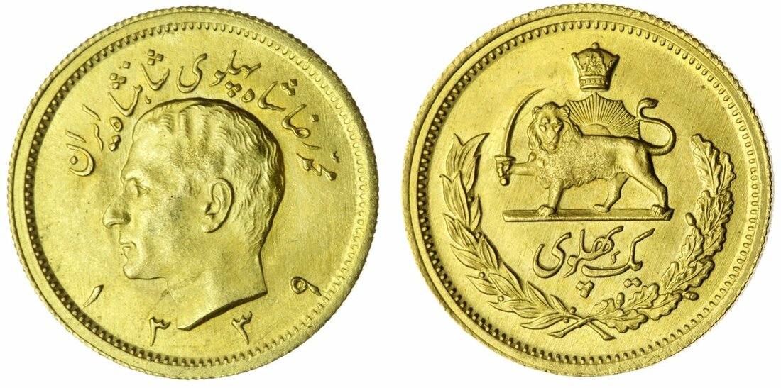 (g) Persia, Pahlavi Dynasty, Mohammad Reza Shah (1941-79), gold Pahlavi, SH1339 (1960) (KM 1162), about uncirculated