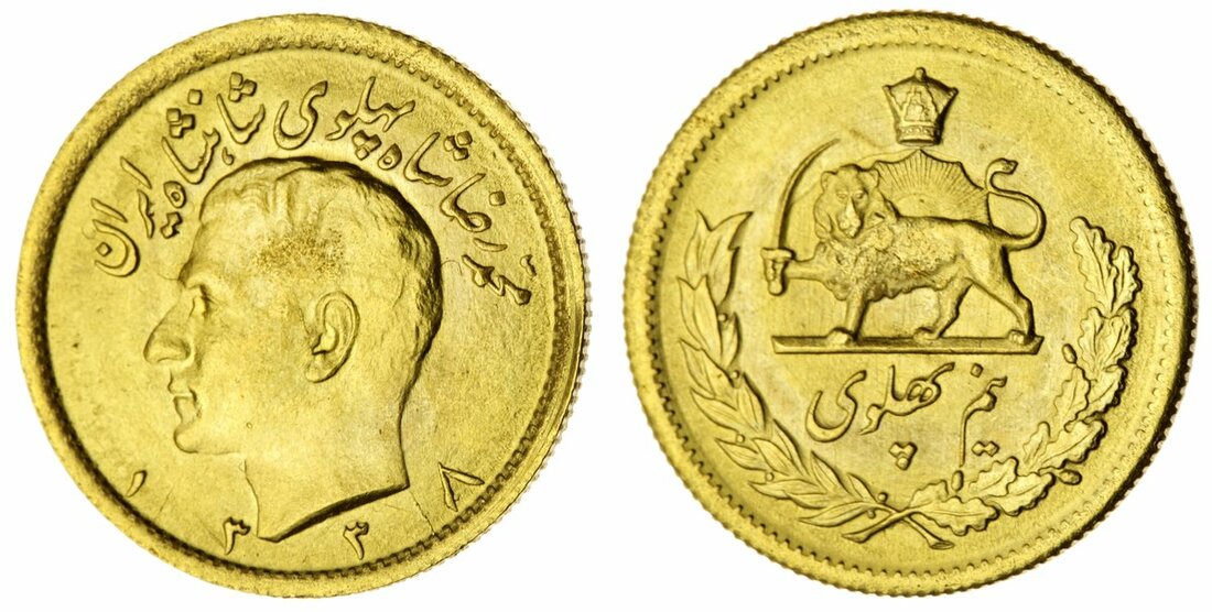 (g) Persia, Pahlavi Dynasty, Mohammad Reza Shah (1941-79), gold Half-Pahlavi, SH1338 (1959) (KM 1161), good extremely fine