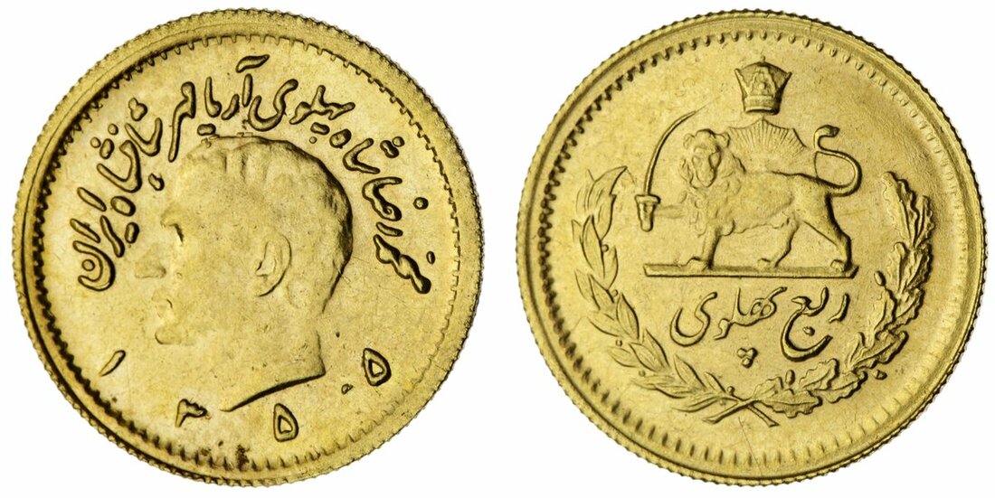 (g) Persia, Pahlavi Dynasty, Mohammad Reza Shah (1941-79), gold Quarter-Pahlavi, SH1355 (1976) (KM 1198), extremely fine