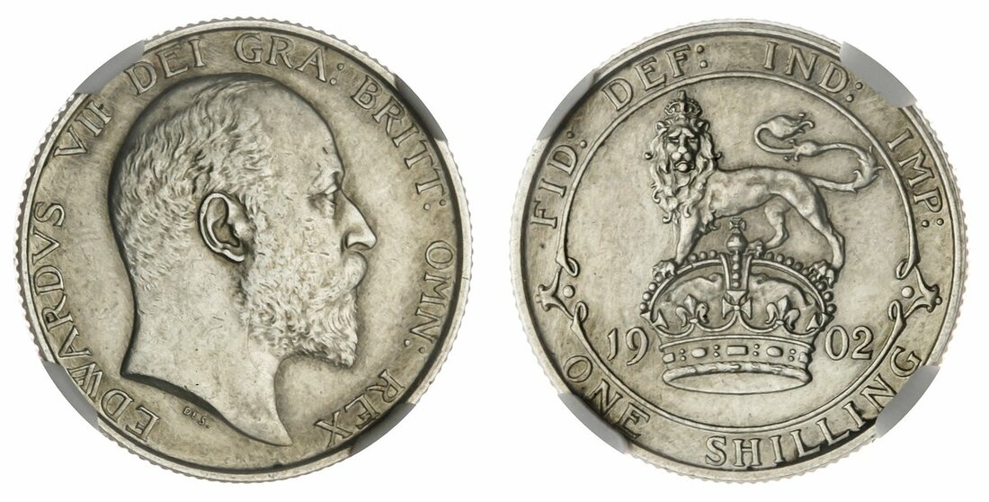 PF55 | Edward VII (1901-1910), Matte Proof Shilling, 1902, bare head right, rev. lion atop crown, edge milled, 5.66g, 12h (ESC 3588 [1411]; S.3982), cleaned, otherwise extremely fine, in NGC holder, graded PF55