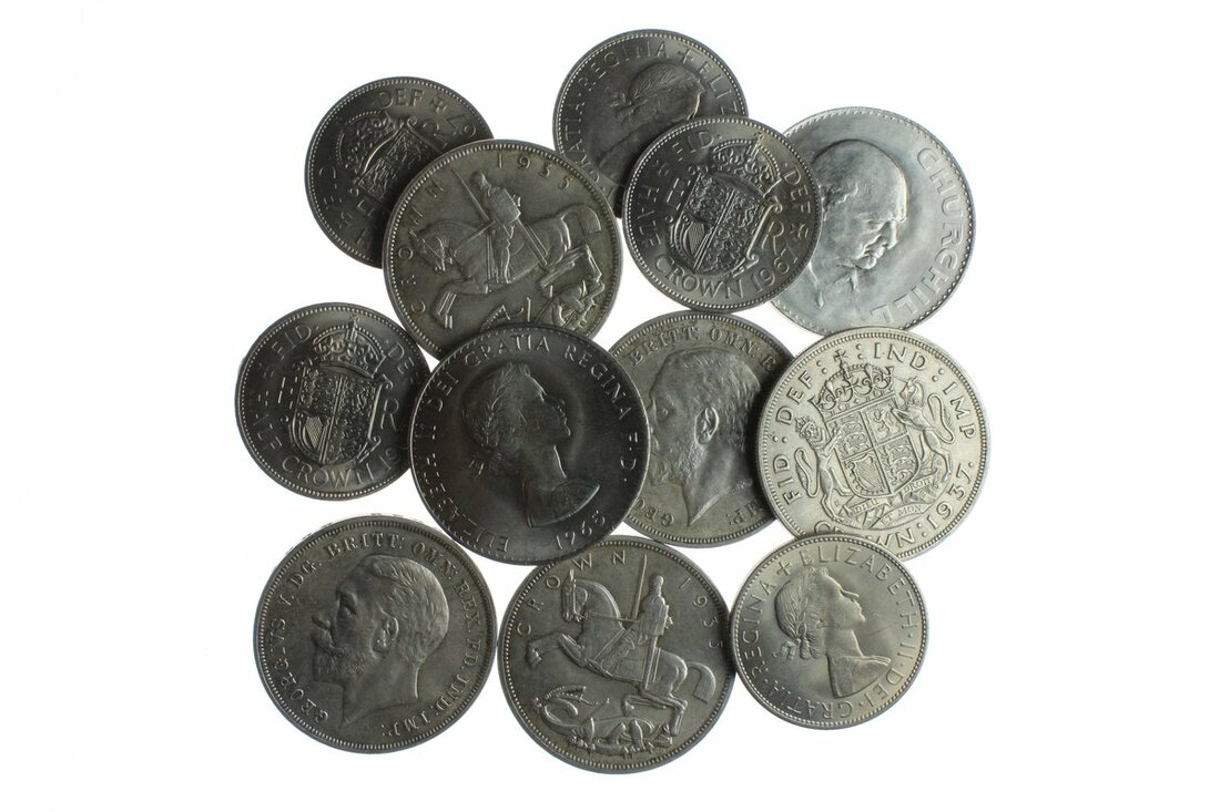George V - Elizabeth II, a collection of Crown and Halfcrown pieces consisting of Crowns 1935(4), 1937, 1965(Churchill)(5), Halfcrowns 1967(5) (Spink 4048, 4078, 4144, 4145), conditions from good very fine to uncirculated