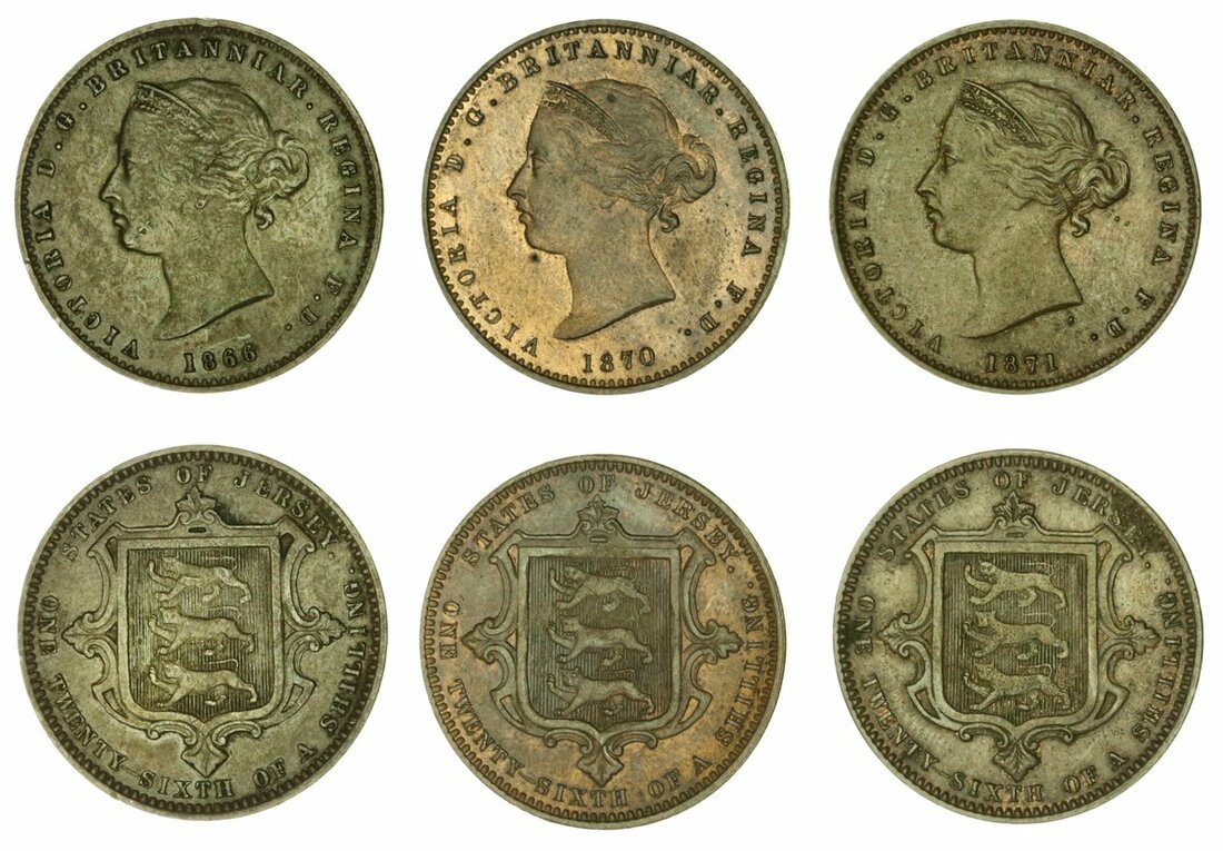 (g) Jersey, Victoria (1837-1901), Twenty-Sixth Shillings, first bronze issues (3), 1866; 1870; 1871 (Pridmore 34-36; S.7005), good fine to good very fine, the second with much mint colour (3)