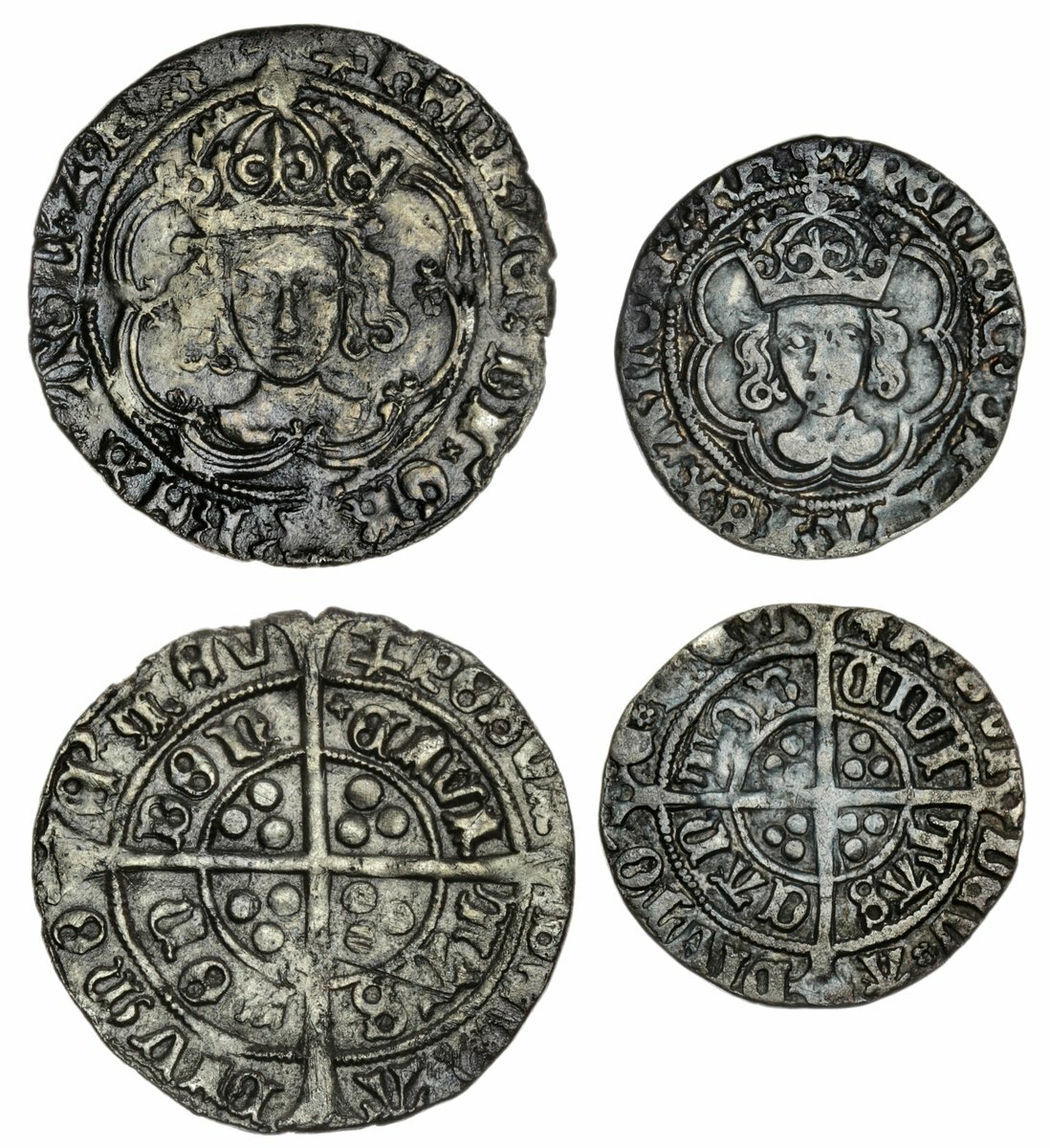Henry VII (1485-1509), Groat, 1499-1502, Type IIIc, plain and jewelled arch, saltire before CIVI, lettering of neat style, 2.78g, 9h, m.m. anchor (North 1705c; Spink 2199), rough surfaces, toned, a bolder fine; Halfgroat, Canterbury, King and Archbishop Morton jointly, Type IIIb, 1493-1495, trefoil stops, rev. rosette stops, 8h, 1.39g, m.m. [?]/lis (North 1712; Spink 2210), toned, good fine (2)