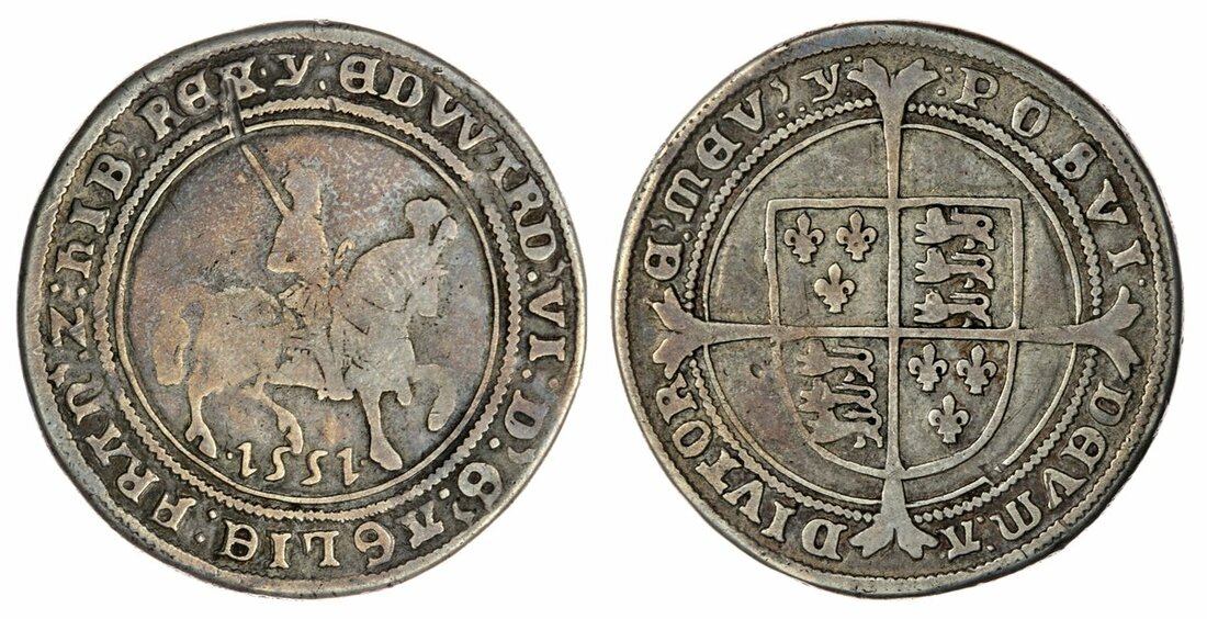 Edward VI (1547-1553), Third Coinage, Fine Silver, Halfcrown, 1551, King on horseback right, plume on head dress, 14.90g, 7h, m.m. y (North 1934; Spink 2479), rubbed, otherwise on a pleasingly round flan, fair / fine