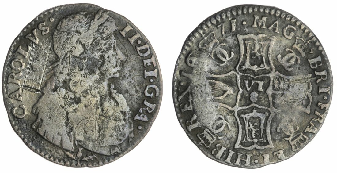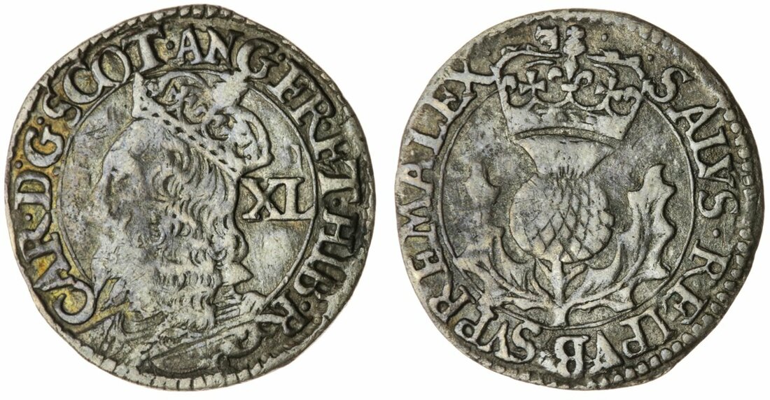 The Abramson Collection of English Coins | Scotland, Silver Hammered Coins (3), Francis and Mary, Nonsunt [Twelvepenny-Groat], 1559, 1.65g, 2h (Spink 5447), irregular flan with slightly rough surfaces, otherwise a bolder fine; also, Charles I (1625-1649), Second Coinage, 40-Pence, 1636, 1.71g, 7h (Spink 5548), toned, fine or better; lastly, Charles II (1660-1685), Half-Merk, 1671, 2.93g, 6h (Spink 5614), graffiti and scratches behind and across bust, otherwise fair / fine (3)