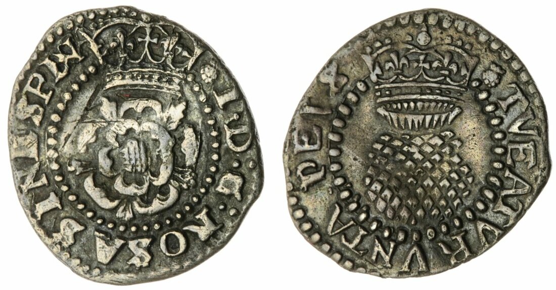 The Abramson Collection of English Coins | James I (1603-1625), Third Coinage, Halfgroat, 1621-1623, Tower, no stops on rev., 0.99g, 5h (Spink 2671), slightly crimped on an irregular flan with resultant stress marks, otherwise richly toned, very fine, the reverse better still