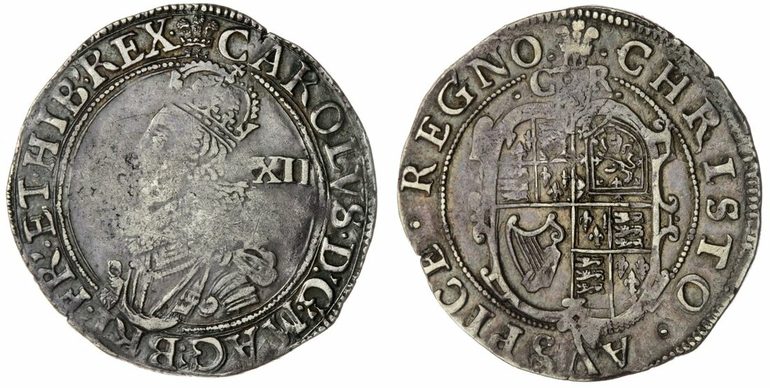Charles I (1625-1649), Group C, Shilling, 1630-1631, Type 2a, Tower (under King), (m.m.) CAROLVS D .' G .' MAG .' BRI [.'] FR .' ET HIB .' REX •, tall narrow crowned bust, plain armour, rev. CHRISTO • AVSPICE • REGNO • (m.m.) •, oval garnished shield, CR above, 5.72g, 3h, m.m. plume (Sharp C2/1; Brooker 445ff; North 2221; Spink 2787), slightly irregular flan, and the portrait heavily rubbed, otherwise pleasantly toned, fair / good fine, scarce