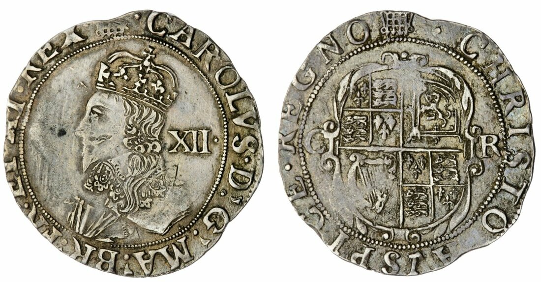 Charles I (1625-1649), Group D, Shilling, 1633-1634, Type 3.1, Tower (under King), (m.m.) • CAROLVS D .' G .' MA .' BR .' FR .' ET HI .' REX •, fourth bust, plain arches, stops flank m.m., rev. CHRISTO AVSPICE REGNO (m.m.) •, oval garnished shield, dividing CR, 5.97g, 7h, m.m. portcullis (Hawkins 3¹; Sharp D4/1; cf. Brooker 483 [for bust]; North 2223; Spink 2789), slightly irregular fla, otherwise handsomely toned with a pleasing portrait, about very fine