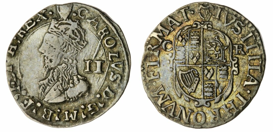 The Abramson Collection of English Coins | Charles I (1625-1649), Group D, Halfgroat, 1633-1634, Type 3.1, Tower (under King), no inner circles, reads M B F ET H, 1.07g, 3h, m.m. harp (Brooker 670; North 2254; Spink 2828), lightly toned, on an impressively full flan, good fine / good very fine, a rare survivor in this state