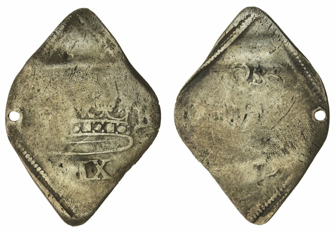 The Abramson Collection of English Coins | Charles I (1625-1649), Civil War Issues, Ninepence, 1645, Newark Besieged, 3.74g, 12h (North 2641; Spink 3144), pierced, creased and flattened, otherwise a rare opportunity to fill the type collection at a restricted budget
