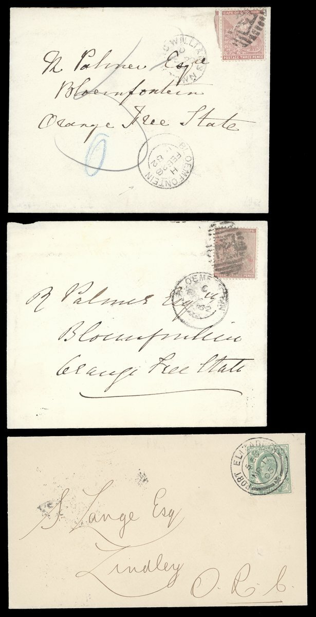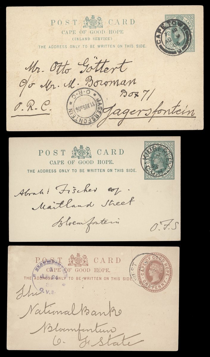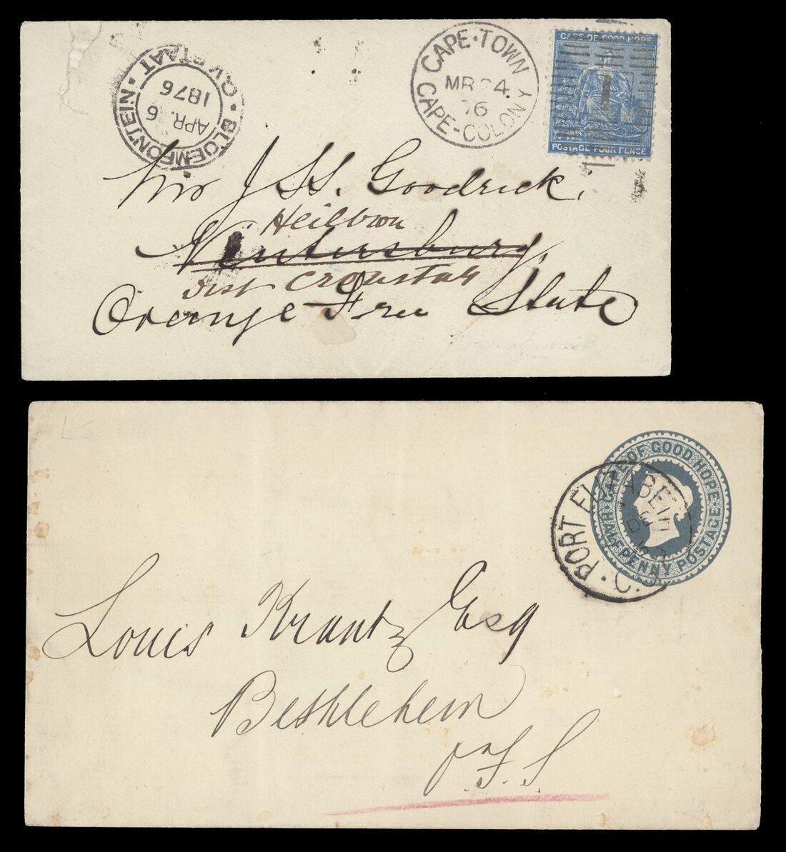 1876-1906 envelopes (7), 1d. stationery envelope and ½d. (2) and 1d. stationery cards, variously addressed, the envelopes franked at ½d. (unsealed envelope), 2d. (2), 3d. (2) and 4d. (2); generally fine