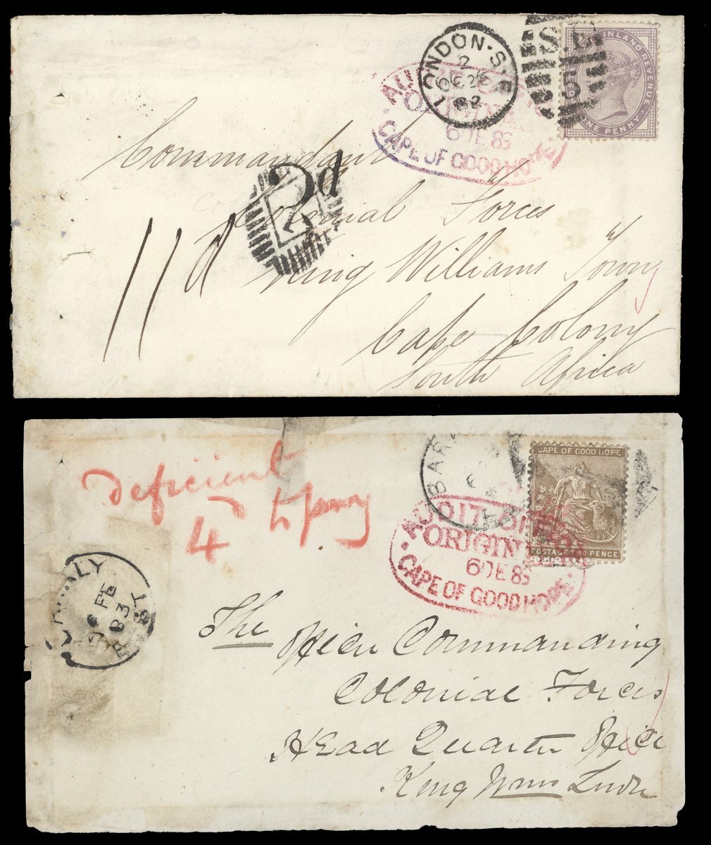 1882 (26 Oct.) envelope from London to King Williams Town, franked at 1d., showing