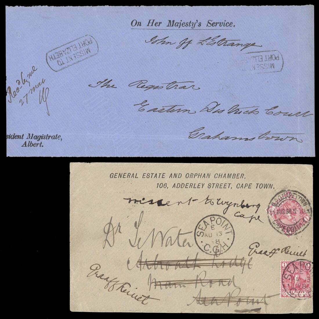 Undated large part OHMS front from Albert? to Grahamstown showing two strikes (one very fine) of scarce framed