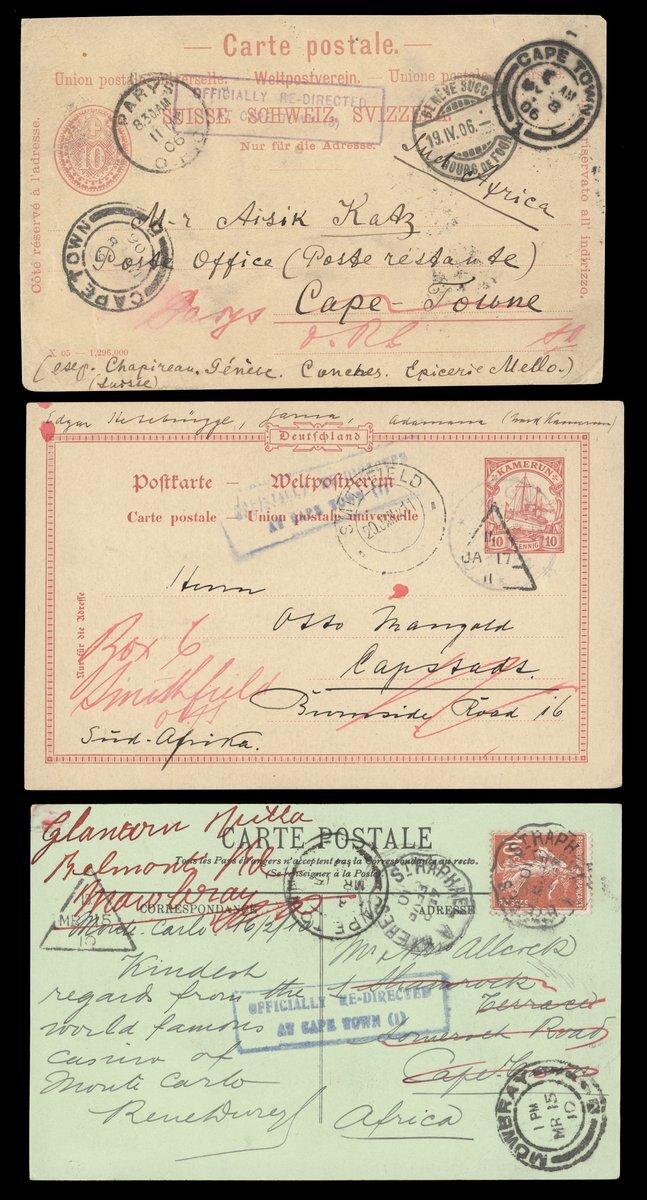 1905-10 envelope and cards (12), variously addressed and franked including mail from Cameroon, France, India, Latvia, Switzerland and UK (5), all showing framed