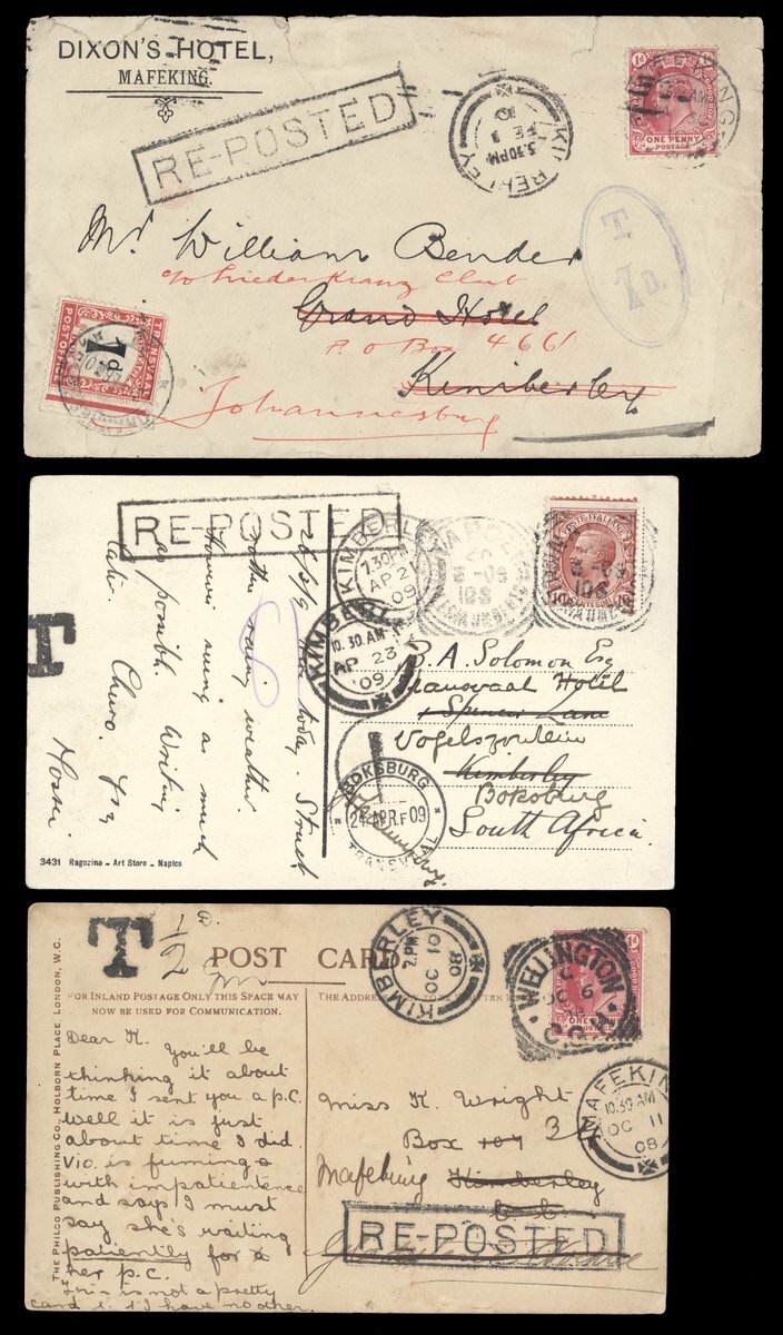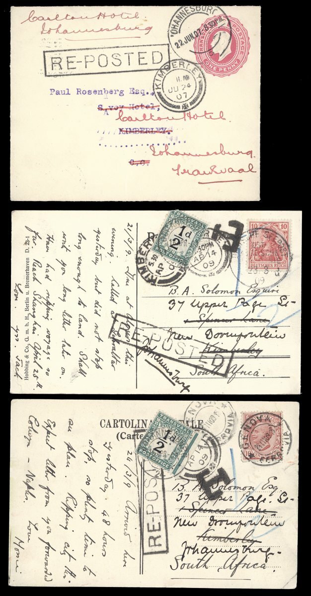 1907-10 envelope, 1d. stationery envelope and picture postcards (5), variously addressed and including mail from Germany and Italy (2), each showing large framed
