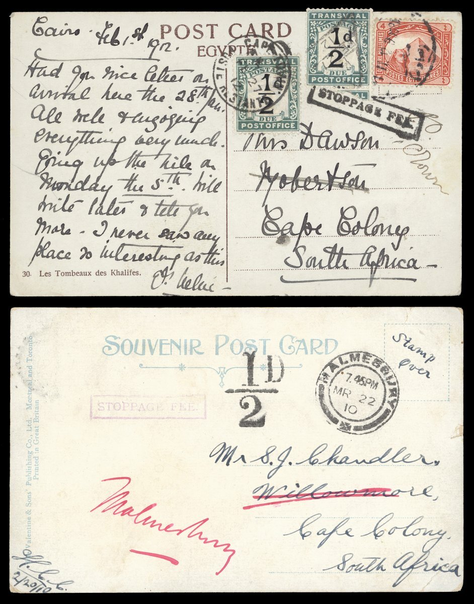 1910 (Feb.) picture postcard from Canada to Willowmore, redirected to Malmesbury and showing