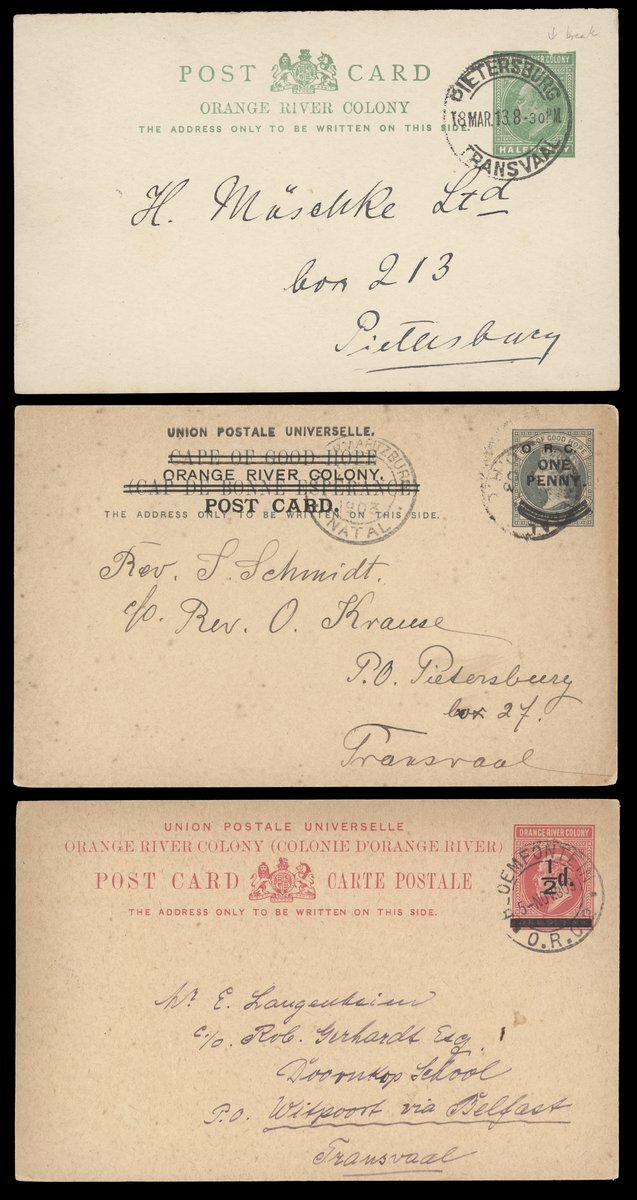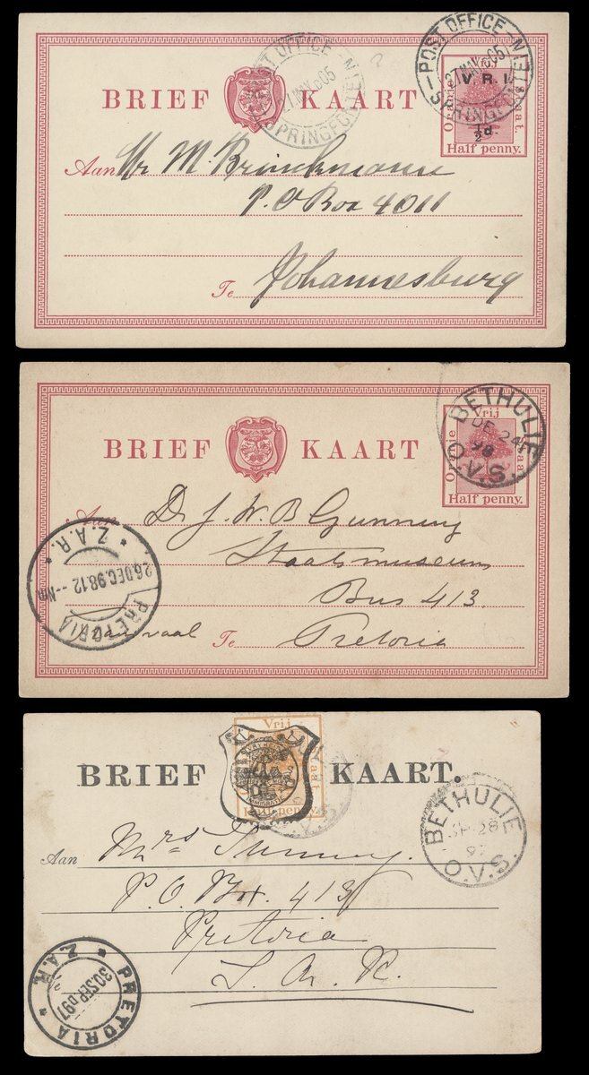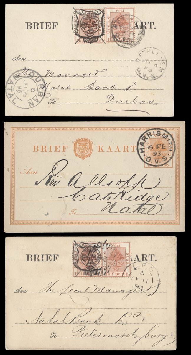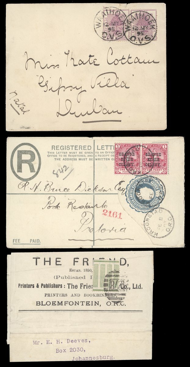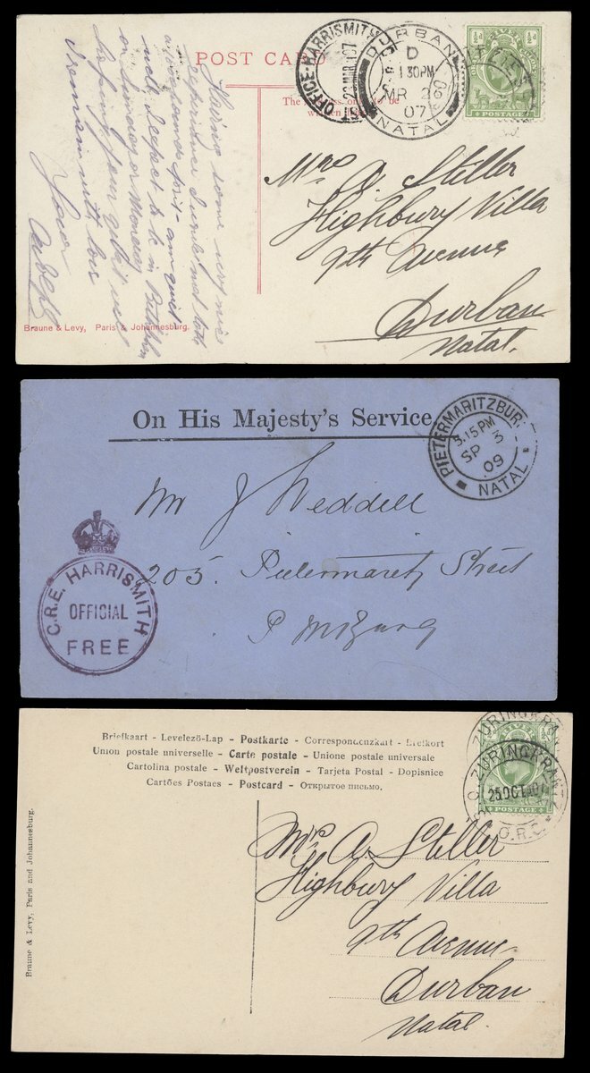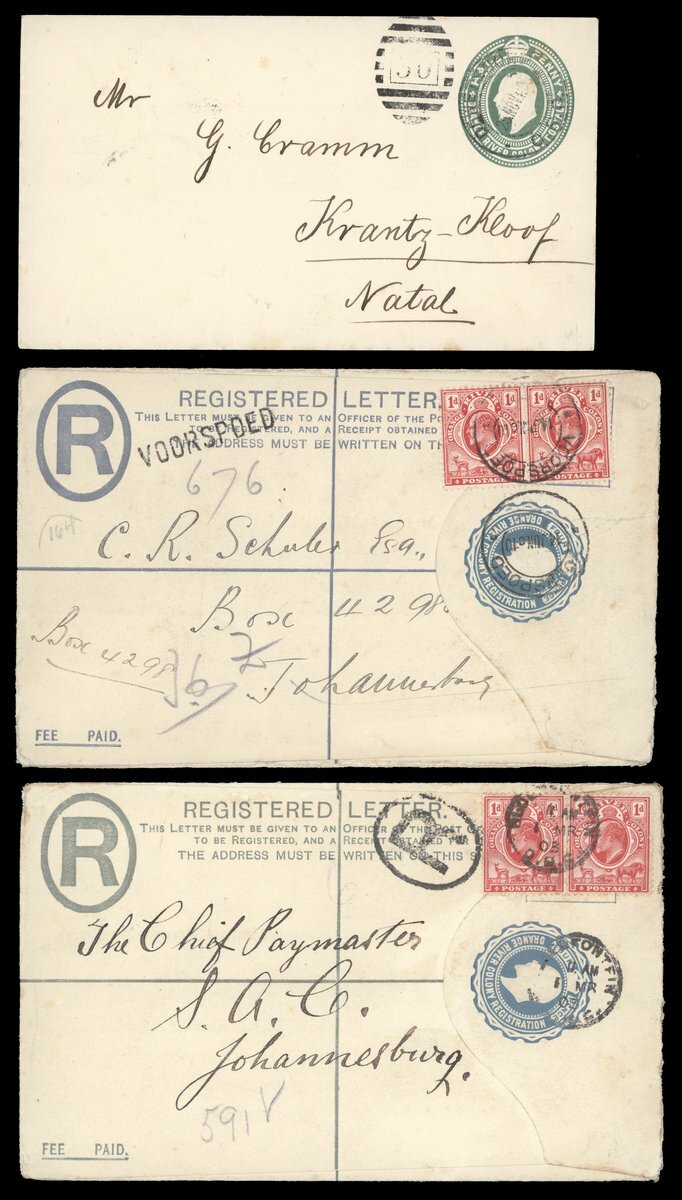1892-1909 envelopes (7, two official, one being registered), ½d. stationery envelope, 4d. registered envelopes (3, all uprated 2d.), stationery cards (15), picture postcards (2) and a wrapper, variously addressed, the envelopes with frankings of 1d. (2, one official), 2d. (3) and 1/- (official); condition a little mixed