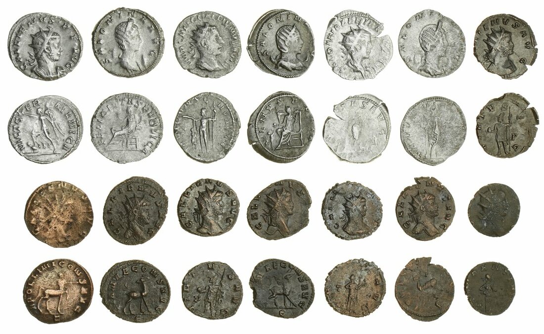 Roman Empire, 3rd Century AD [14]; Valerian II, as Caesar (253-260), AR Antoninianus, 2.70g, PIETAS AVG (Cohen 41); also Gallienus [10], joint reign (AD 253-60), BI Antoninianii; also, sole reign (260-268) [9], in silver, 3.50g, VICT GERMANICA; in copper {8], Zoomorphic types {4}, Stag, DIANAE CONS AVG [2]; Centaur, APOLLINI CONS AVG; Goat, IOVI CONS AVG; (Cohen 72; 154; 162); others [4] (Cohen 5; 1221var.; 1060; cf. 932), fine to very fine [14]