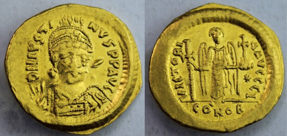 Byzantine Empire, Justinian II (527-65), AV Solidvs, Constantinople, officina I (DOC 8; Sear 139), lustrous, very fine/good very fine