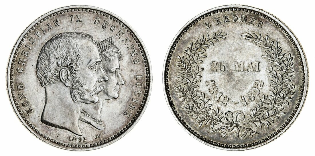 Denmark, Christian IX (1842-1892), Commemorative 2-Kroner, 1892, Golden Wedding Anniversary (KM 800), once lightly wiped, almost extremely fine