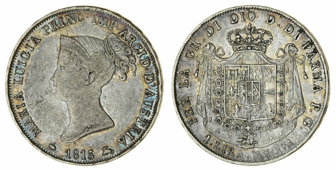Italy, Parma, Maria Luigia of Austria (1815-47), Lira 'Nuova', 1815 (Mont 119; Pag. 9; Gig. 9), light tone, iridescent in recesses, good fine/almost very fine