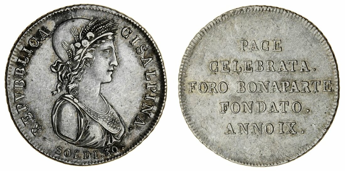 Italy, Cisalpine Republic (1797-1802), 30-Soldi, 1801-M, Milan (Pag. 9; KM 1), light hairlines, otherwise very fine or better