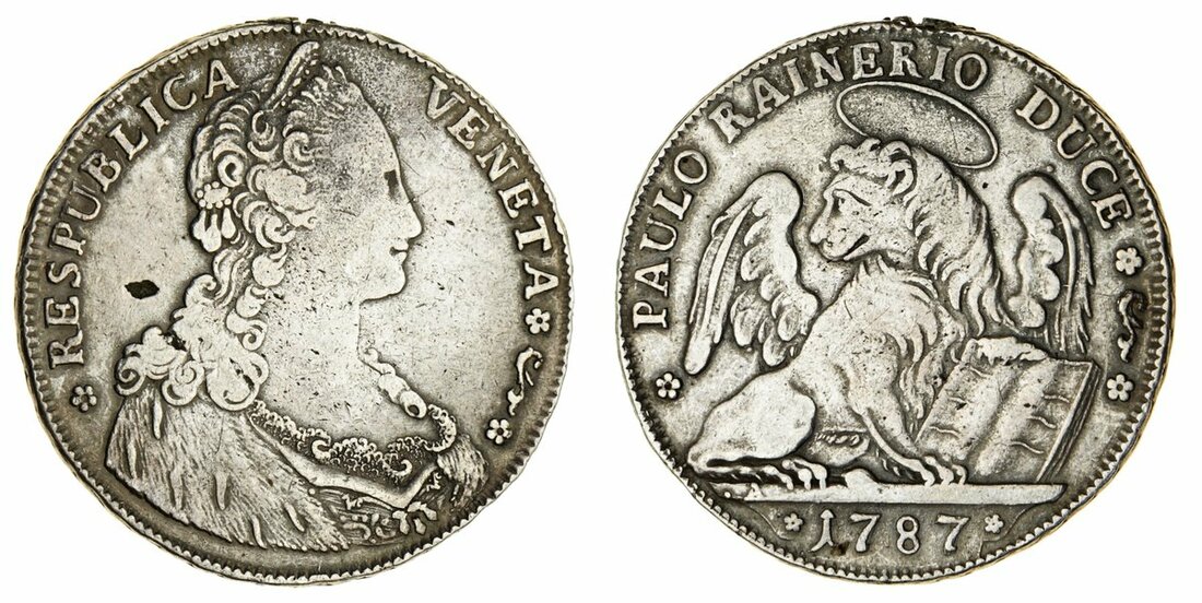 Italy, Venice, Paolo Ranierio (1779-89), Tallero, 1787 (Pag. 35; Dav. 1568; KM C104), removed from mount at 12 o'clock, with wiped surfaces, otherwise a bold fine