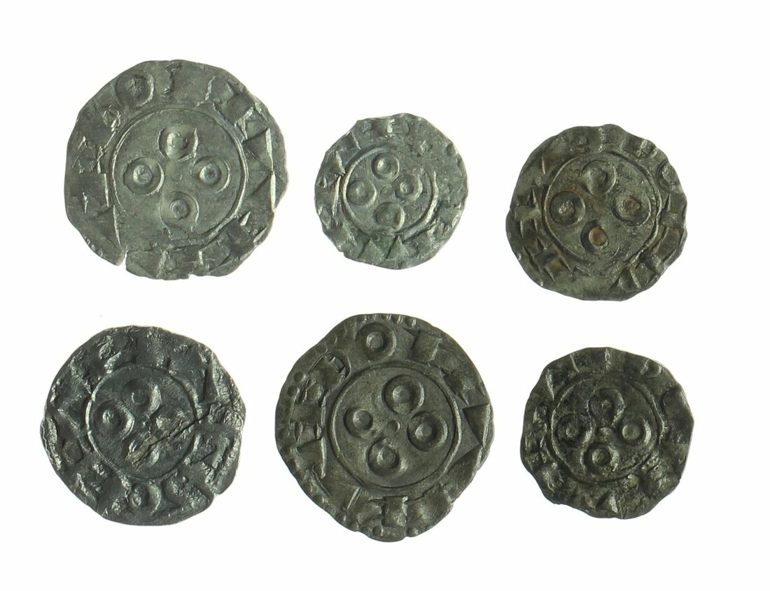 France, Provincial Coinage, Melgueil, Anonymous AR Deniers(5), 12th-13th century (Duplessy 1578); with AR Obol (Duplessy 1579), fine or better. (6)