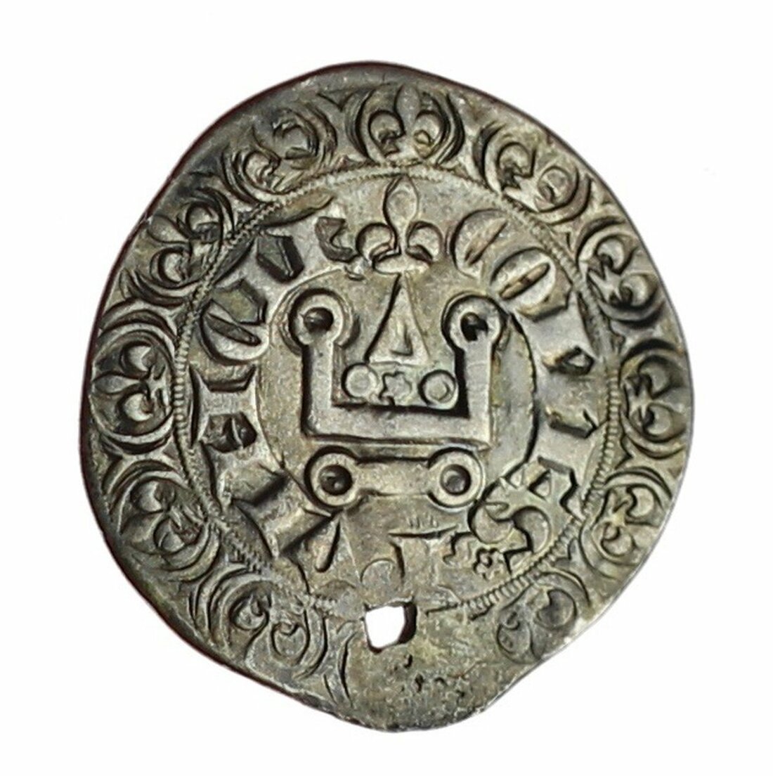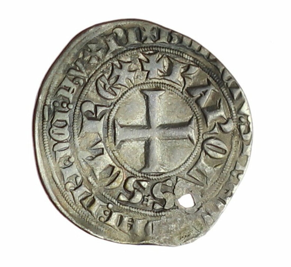 France, Provincial Coinage, Provence, Charles, count of Provence and king of Sicily (1266-1277), AR Gros Tournois, 3.87g (Duplessy 1627A var.), pierced and flattened by piercing, wavy flan, good fine and uncommon