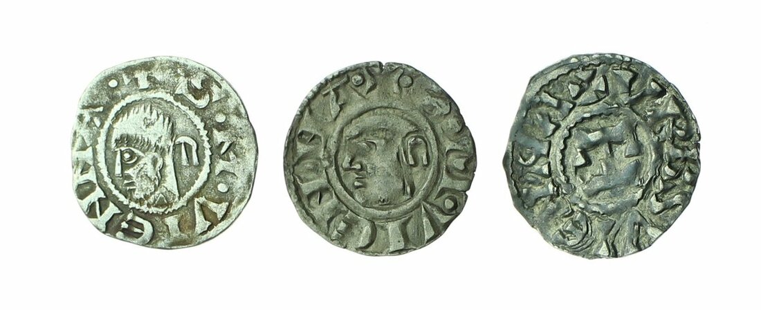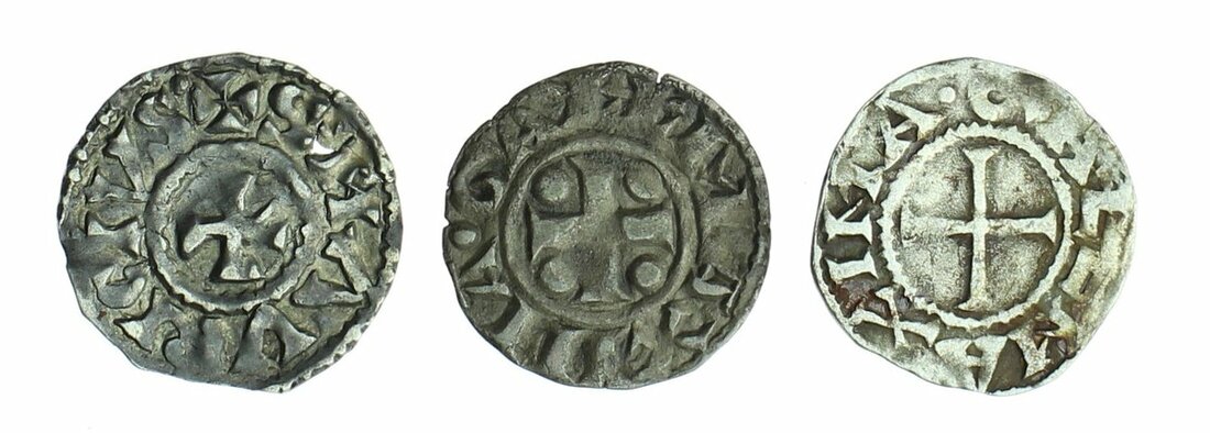 France, Provincial Coinage, Archbishops of Vienna, AR Deniers(3), Henri le Noir, king of Bourgogne (1038-1056), 0.93g (Duplessy 2373), flan split, about fine; with Anonymous, 13th century(2) (Duplessy 2383), about fine and good fine. (3)