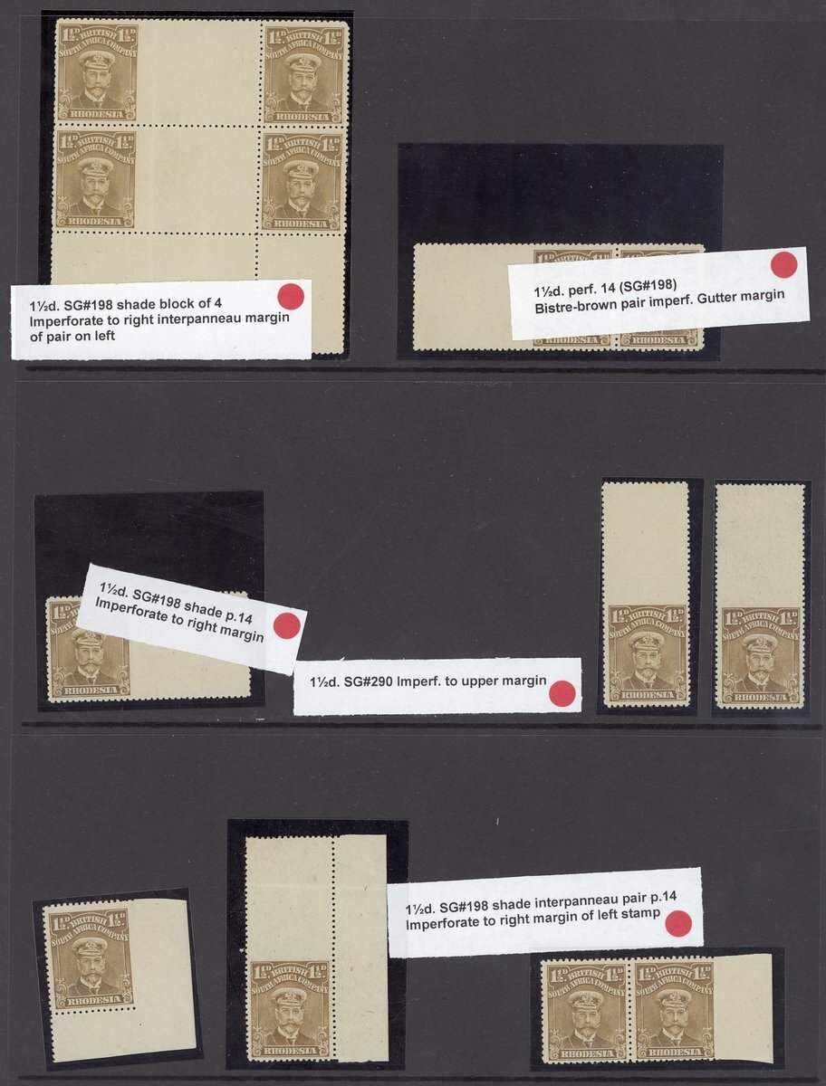 1½d. brown group of interpanneau imperforate varieties (8) comprising a block of four imperforate at left of central margin, horizontal pairs imperforate between left margin and stamp (2) and five single examples with various imperforate varieties; fine and fresh mint