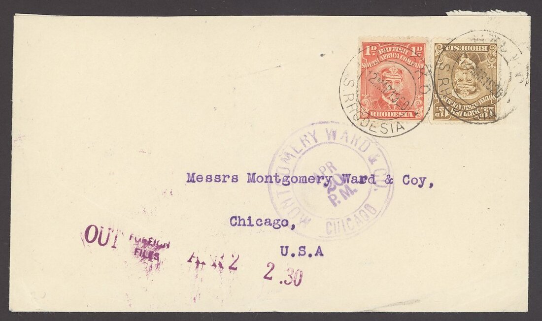 1920 (12 Mar.) envelope to Chicago bearing 1d. red and 1½d. brown (affixed upside down) both tied by