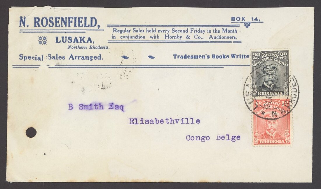 1922 (31 Aug.) printed envelope to Elizabethville, bearing 1d. and 2d. tied by single strike of